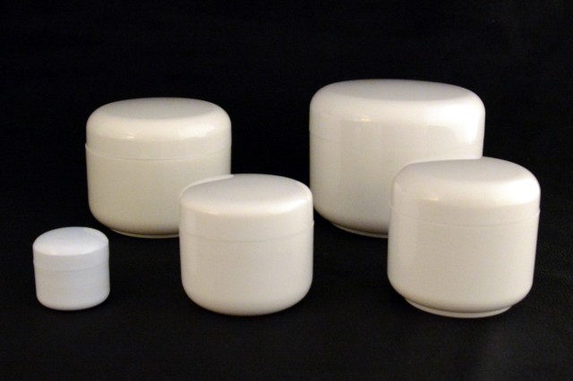 Tarros de PS blanco brillante con vasito interior de PP y obturador.