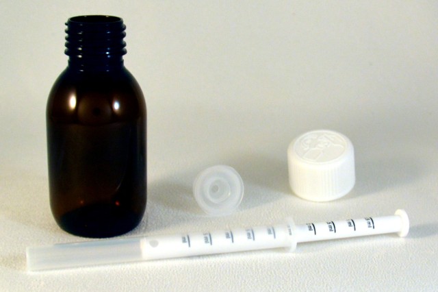 | Jeringa + Adaptador Compuesto por jeringa pediátrica de 5 ml y obturador-adaptador P28Sólo para botellas Pet. |
