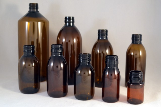 Frascos PET topacio de 20 a 1000 cc con diferentes opciones de cierre.